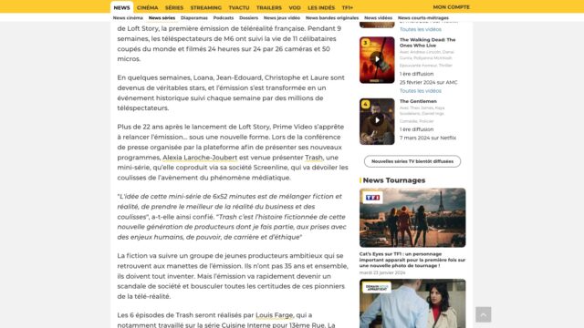 ALLOCINE. 22 ans après le lancement de l'émission, Loft Story va revenir sur le petit écran... à l'occasion d'une fiction coproduite par Alexia Laroche-Joubert, qui reviendra sur les coulisses de la création du phénomène.